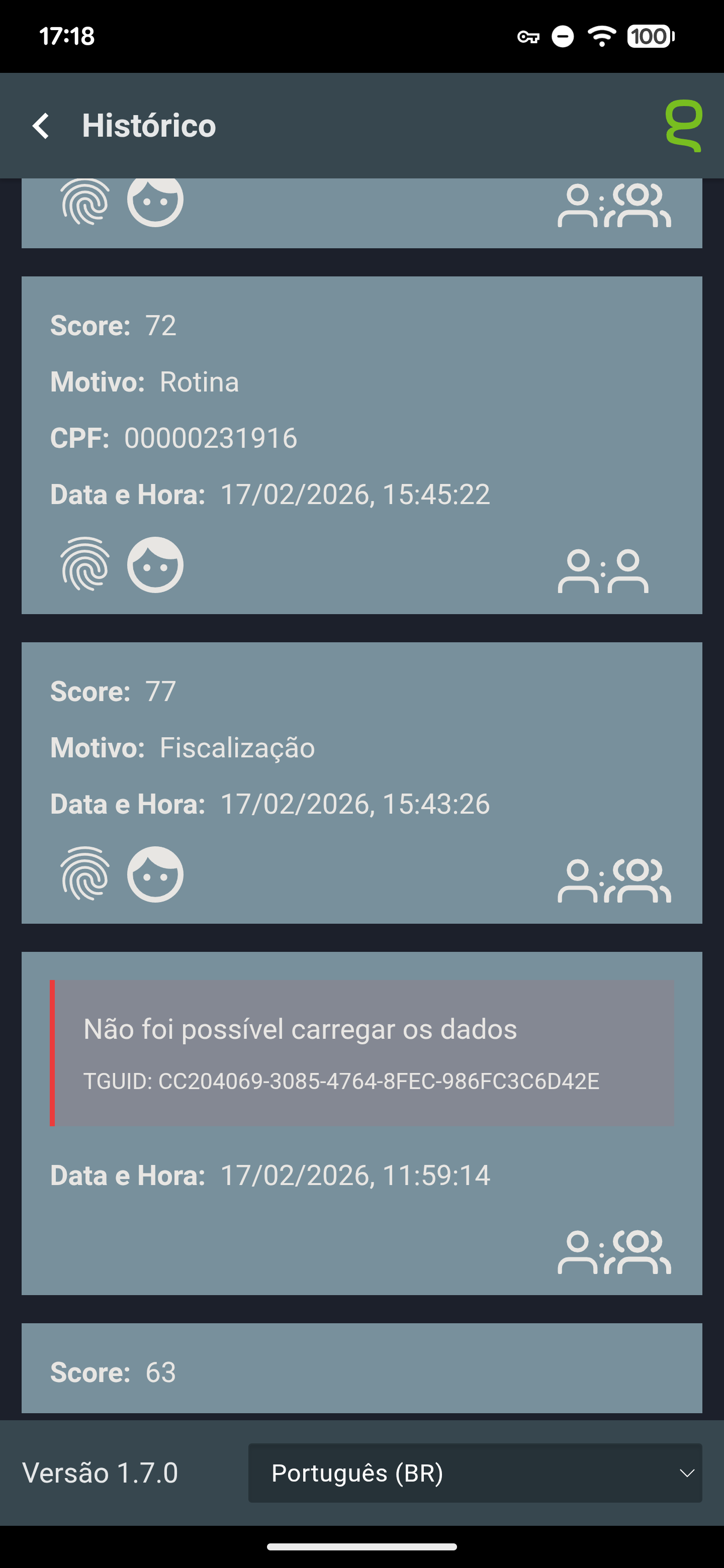 When performing a search (either verification or identification) it is mandatory to register a reason why this search is being performed.\